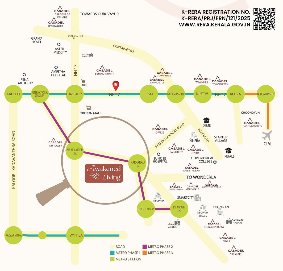 Awakened Living is an active-life-inspired Project spread across greenery in around 1 acre land, located just 600 metres from Vazhakkala, Metro Station. Here, life finds its rhythm in movement, balance, and enlightenment. Surrounded by modern landscapes that nurture the mind, body, and soul, this unique address redefines luxury by infusing the spirit of sport and wellness in every detail. More than a residence, it is a place to rediscover your drive, where children grow up with play in their hearts, and where every moment reflects the joy of a life fully lived. Here, wellness is not a trend or an afterthought. It is a way of life.